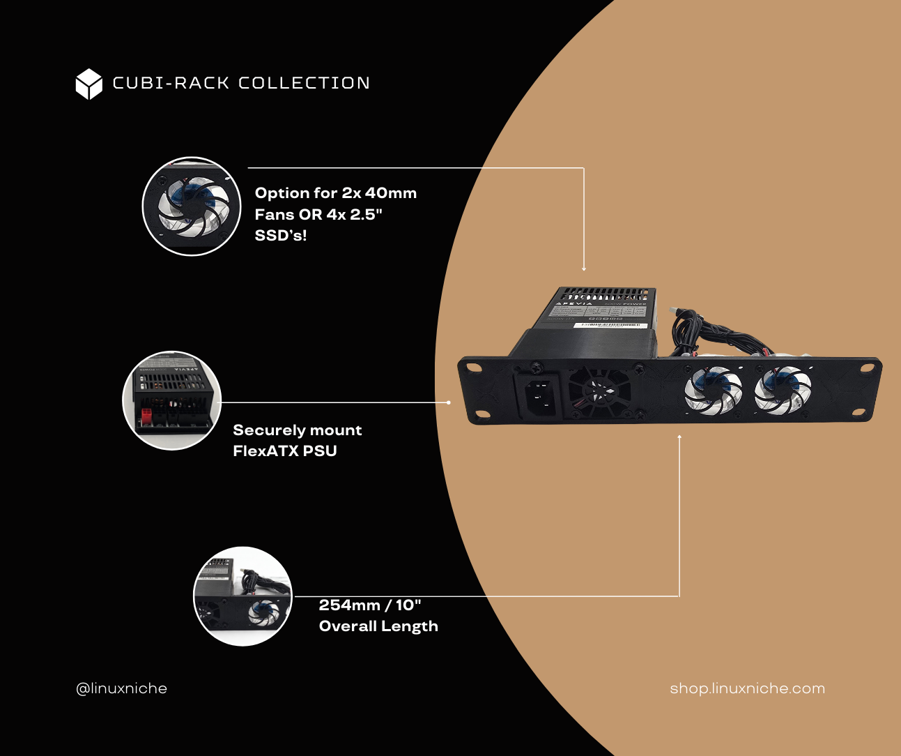 • SSD – Mount 4x 2.5” SATA SSDs next to the PSU
